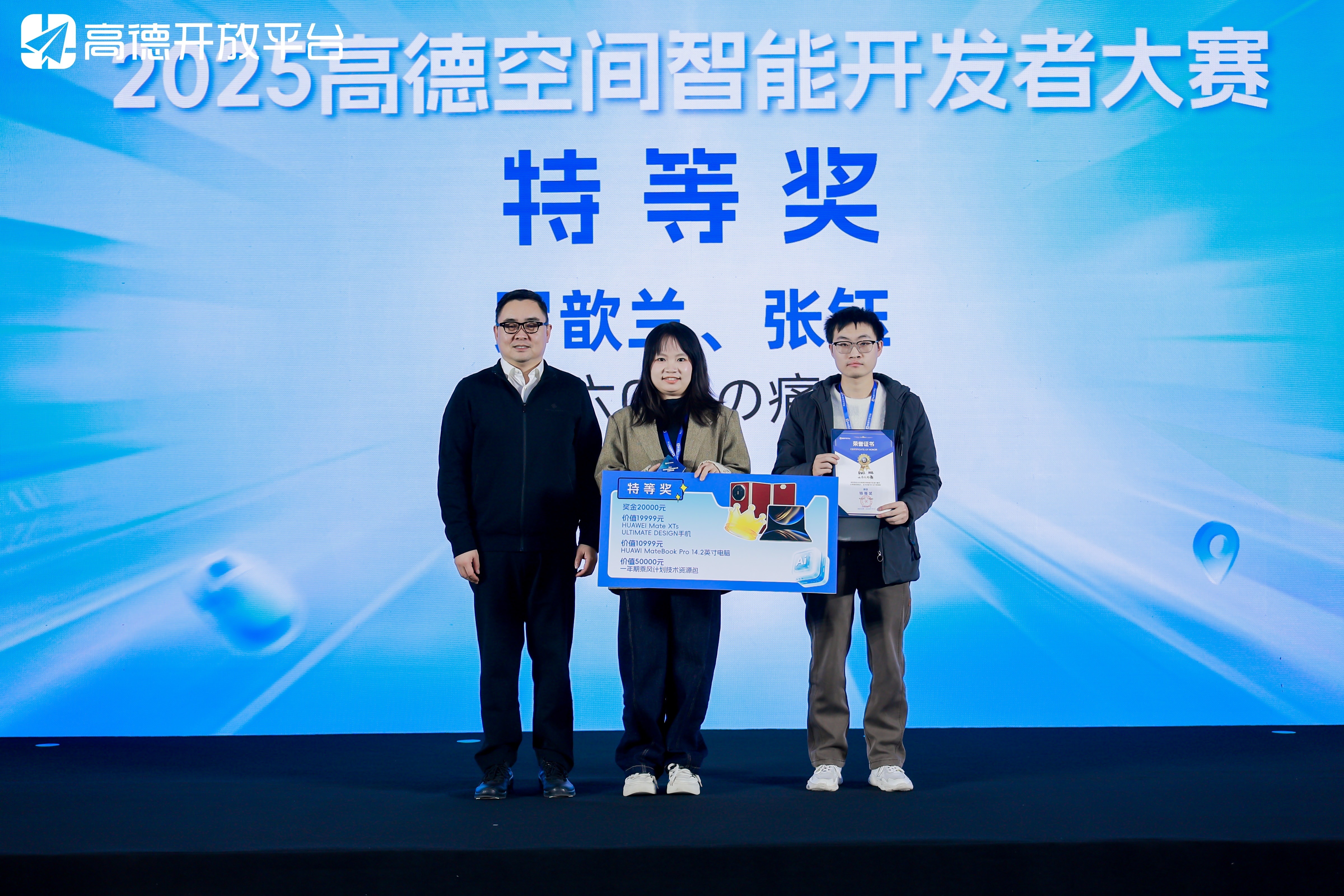 会上揭晓了高德空间智能开发者大赛的获奖名单,并为获奖团队举行了隆重的颁奖仪式。来自同济大学的罗歆兰和同伴带来的路演项目是——无障碍多模态AI安全导航助手,通过实时图像分析与智能推荐,轻松规划出行路线、识别障碍物,助力残障人士出行,成为现场关注焦点,并获得了本次大赛的特等奖。“活动搭建了一个很好的平台,现场看到了很多优秀的创新方案,不仅拓展了思路,更感受到了AI蓬勃的创造力。”她表示,将不断优化完善路演项目,真正推动技术的突破与应用的落地。